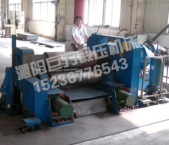 2、三個工作輥均為主動輥,上輥升降和兩下輥平移均由NC控制,確保對任何厚度的板材有良好的送進卷制功能,且板材始終處于夾緊狀態(tài),避免板材滑動、跑偏;